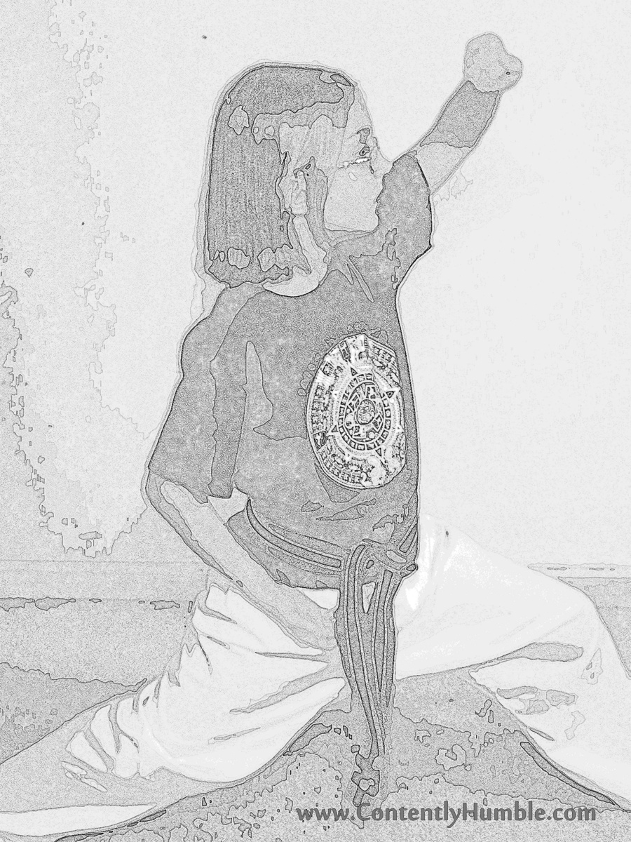 Trilobite Gal (name changed to reflect interest of day) then moves through her Taekwondo stances. If you are doing the Hokey-Pokey you just start with one foot out. Keep it out until step six.